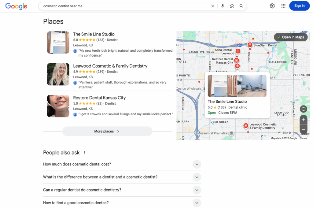 In this blog article I’m going to show you how The Smile Line Studio’s review acquisition strategy helped them start to rank for searches like “cosmetic dentist” and “veneers near me.”